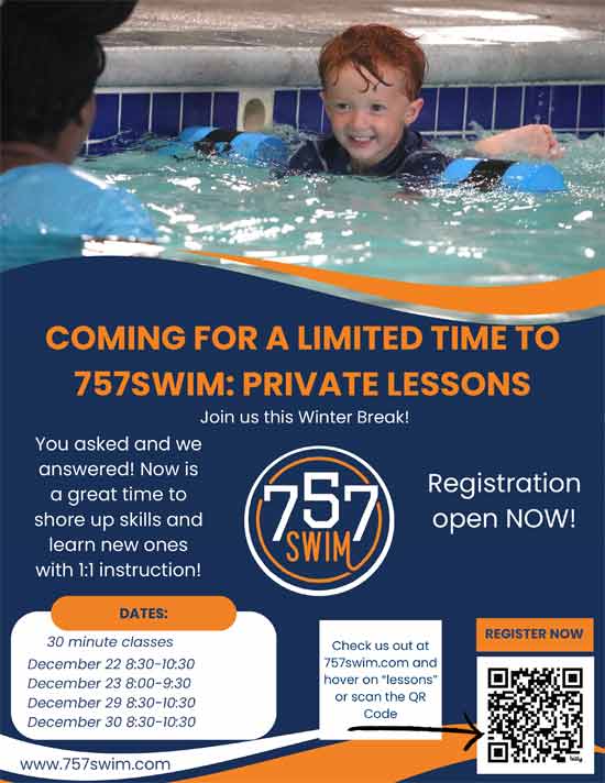 757swim is offering private lessons for four days during winter break: December 22, 23, 29, and 30! Registration is open!