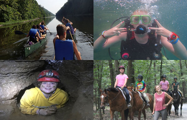 This is not your “typical” overnight camp. Adventure camp (ages 13-17) begins and ends at Camp Horizons. Campers travel with staff to Circleville, West Virginia, home to NROCKS Outdoor Adventures, part of the Camp Horizons family. Campers will spend their days rock climbing, paddling down rivers, ziplining through the trees, and hiking trails that lead to incredible views. They cook meals together outdoors, learn new skills, and build friendships.