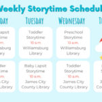 Storytime Schedule at the Williamsburg Libraries You know what would be fun? Taking your little one to a storytime this week…you know what would be more fun? Going with friends…