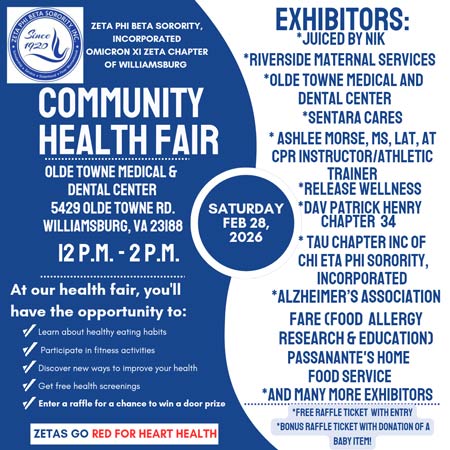 Join Zeta Phi Beta Sorority, Incorporated – Omicron Xi Zeta Chapter of Williamsburg for a Community Health Fair focused on heart health and wellness.