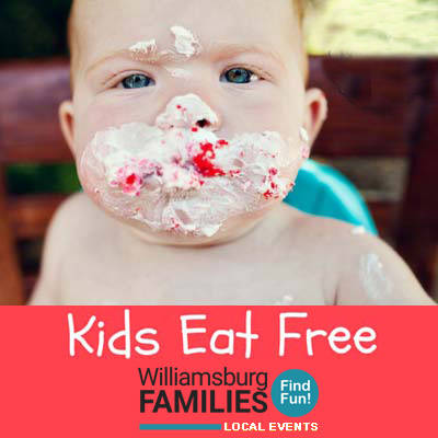 Below is our list by day of the week of kids eat free then keep scrolling for Williamsburg area restaurants that offer low priced kids meals!