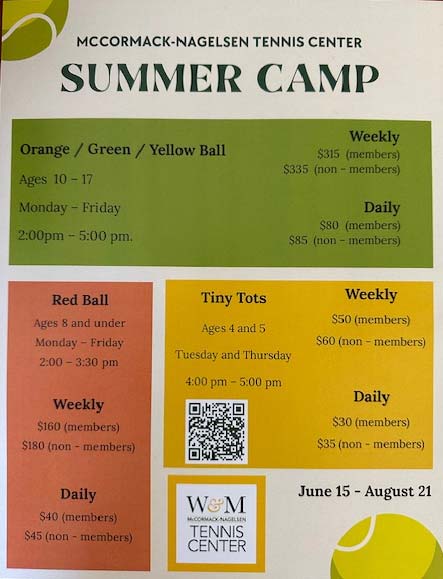 Summer camp is open to campers aged 4 – 19 and will be grouped by age and skill-level. Rackets will be available if you do not have one.